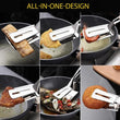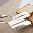 • All in one design. It is not only a frying shovel but also a clamp/clip. It slices and scoops, sandwiches steaks and makes flipping easier. The special hollow design makes it easier for oil to escape and reduces excess oil. The wide-necked tongs are easy to grip, whether it's vegetables, a large steak or bread.