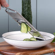 Best suitable to cut long vegetables such as cucumber and carrot, in shorter lengths before slicing use safety holder to have more control and safety.